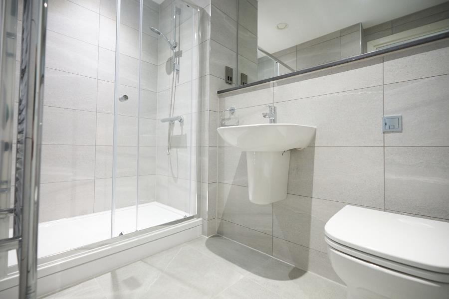 The master bedroom comes fitted with an en-suite bathroom, with another main bathroom accessible from the main hallway. Both are modern with tilled design, chrome fixtures, large format glass tiling, heated tile rail and mirrored wall.