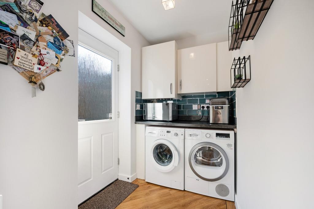 The modern kitchen/diner is designed for those who love to cook and entertain, the sleek and stylish kitchen is equipped with top of the range appliances and plenty of storage space, making meal preparation a breeze. The adjacent dining area provides the perfect spot for family meals and gathering with friends. A practical utility room and downstairs toilet complete the ground floor layout, providing additional functionality and convenience. The utility room allows for easy laundry management and extra storage space.