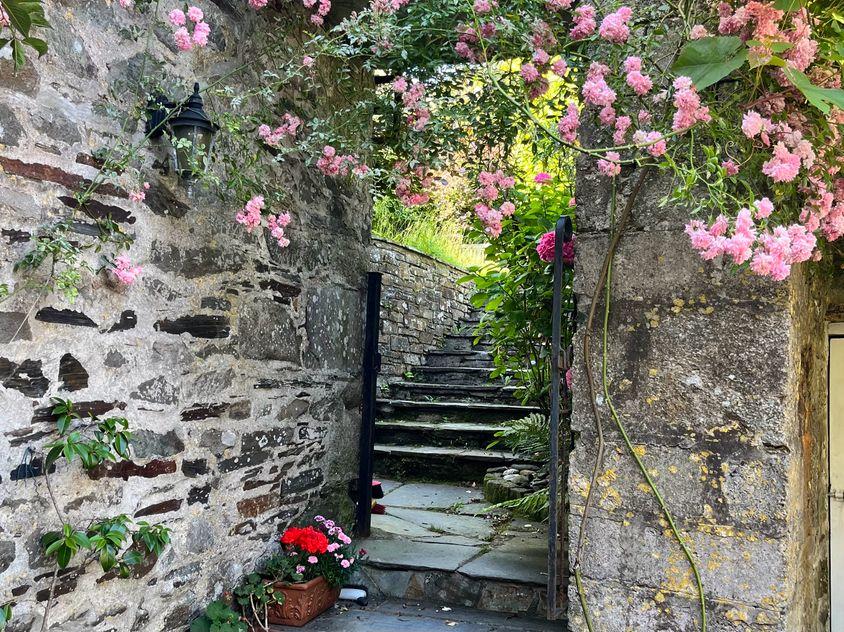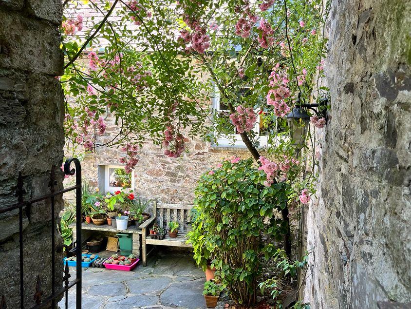 The front garden is walled with 2 large slate patio areas having central path with granite gateposts, shrub and rose borders, pear tree, various other herb and shrub borders. Pathway to the side and rear of the property lovely enclosed slate courtyard with concealed screened oil tank.