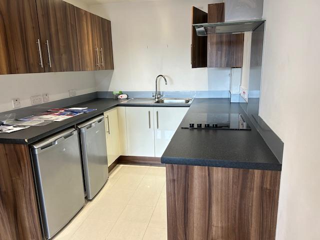OPEN PLAN KITCHEN & LIVING ROOM - The open plan living area and kitchen are light and spacious and there are double patio doors to the front. The kitchen is well fitted and has an integrated electric oven and hob, washer dryer, under counter fridge and freezer.