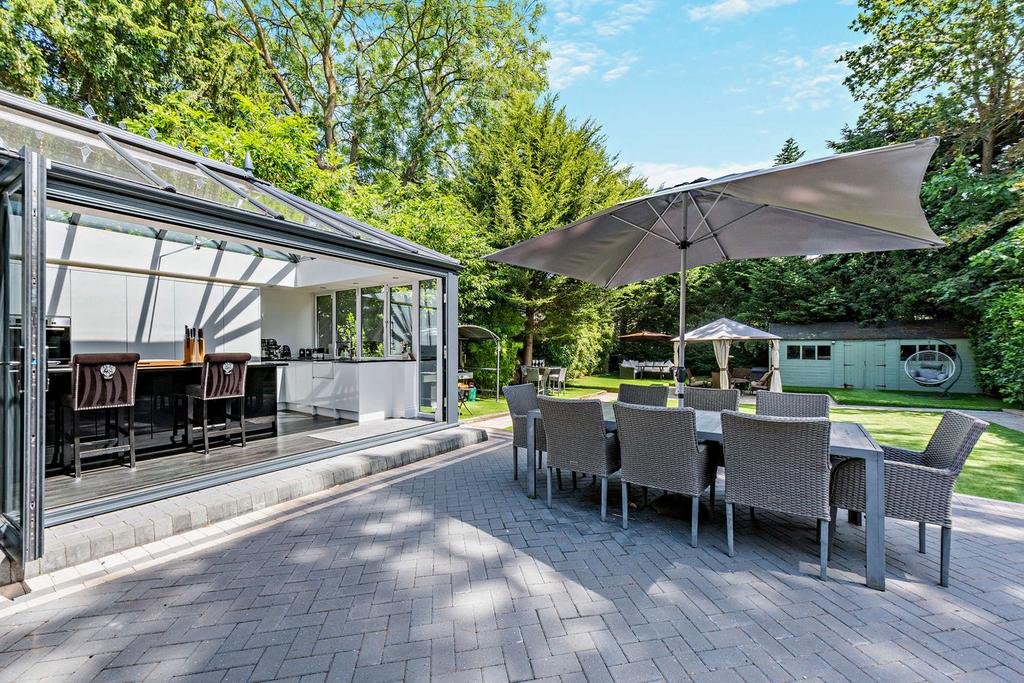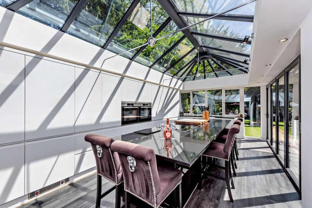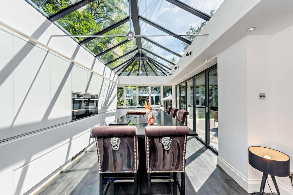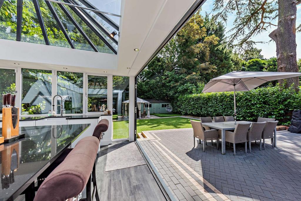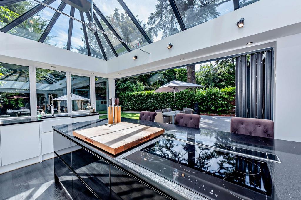 Orangery Kitchen: Fitted three years ago, offering fantastic garden views and bi-fold doors that open up one whole side, blending indoor and outdoor spaces.