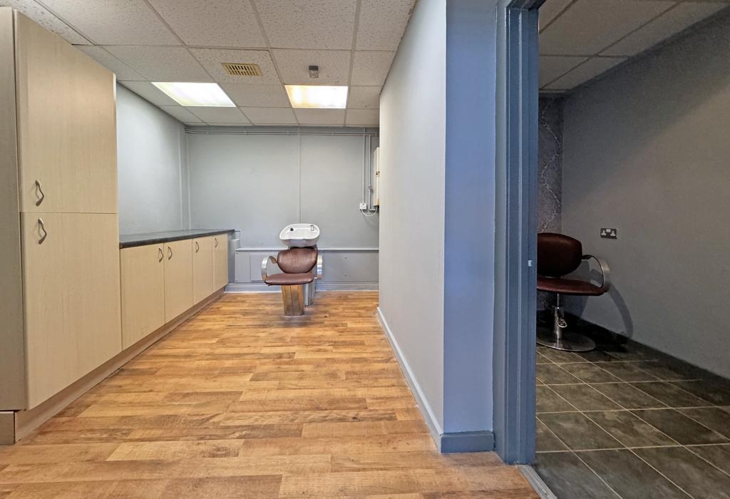 A commercial retail unit for sale with a 1 bedroom apartment above, currently operating as a hair & beauty salon. The salon is well presented with a half-glazed façade, large main salon to the front aspect, a washroom and treatment room to the rear, with the addition of cloaks / staff room and a guest washroom to the rear. Wooden flooring flows throughout the majority of the ground floor retail space.