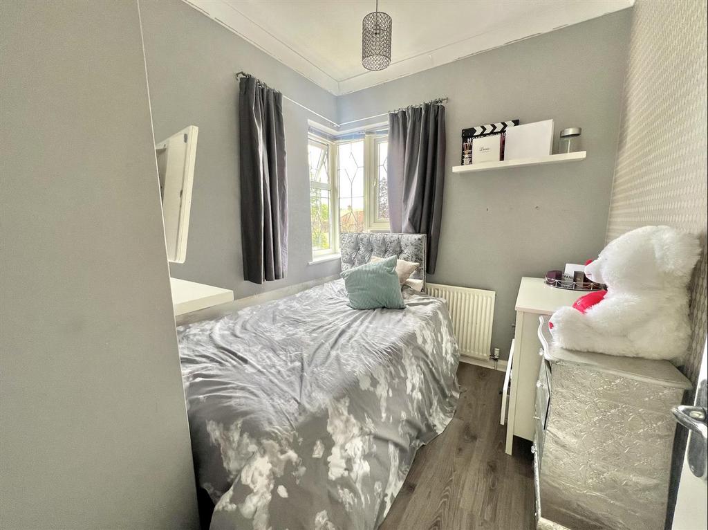 Bedroom 3 - 2.21 x 2.62 (7'3" x 8'7" ) - Smooth grey walls with a grey and white pattered feature wall, white ceiling, grey wooden laminate, one white radiator, double glazed windows looking onto the front of the property, one ceiling pendant and plenty of plug sockets.