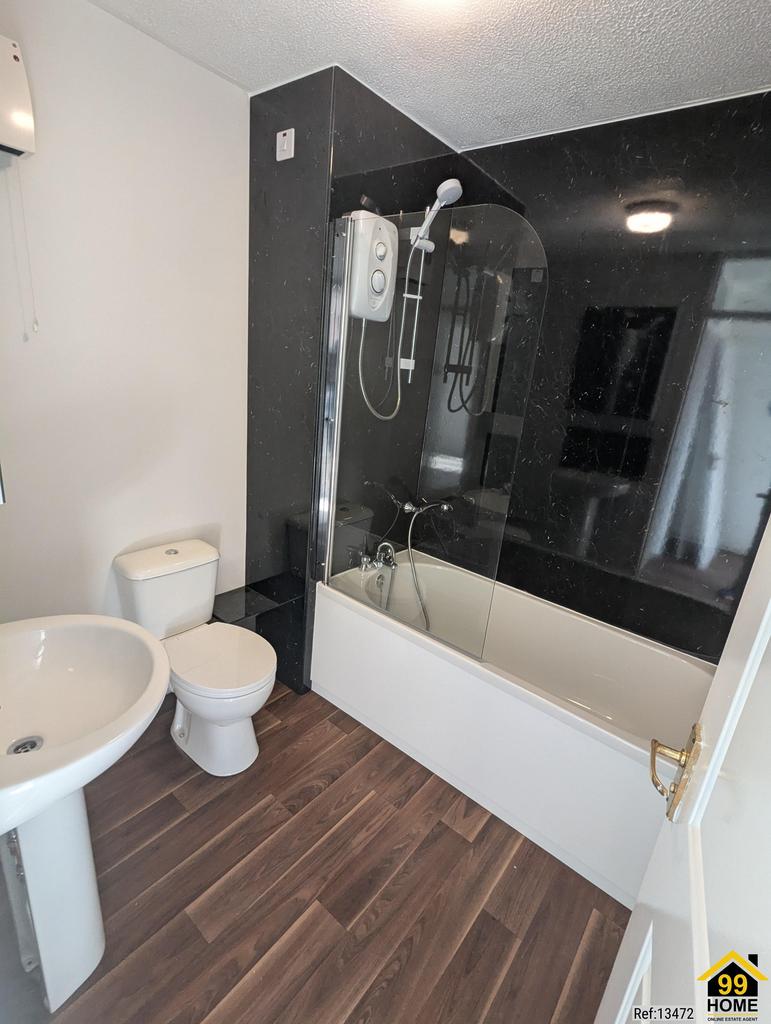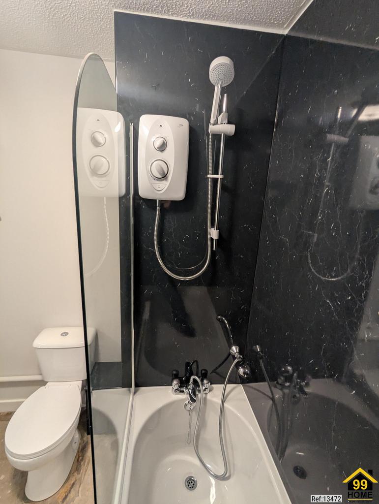 The flat also has a newly installed bathroom with a sink, WC and Electric shower and tap hose over the bath with glass screen