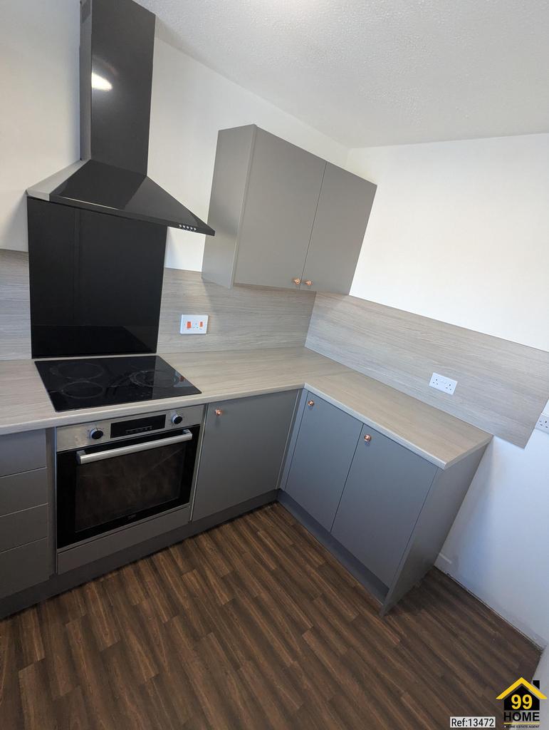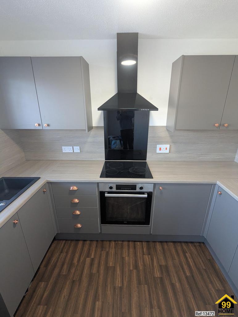 Access to this first floor flat is via a well lit stairwell and into a spacious living room. The living room has white walls, laminate flooring and a large bay window to the front. To the right of the living room you will find the newly installed kitchen, which benefits from matching base and wall units, built in electric oven hob, sink, and a window to the front. With space for washing machine & tall fridge