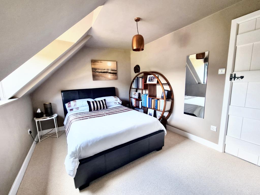 BEDROOM 1 (4.88m x 3.62m approx)(16' x 11'10" approx) with fitted carpet, radiator, six power points, two recessed eaves wardrobes and two windows with superb double aspect views.