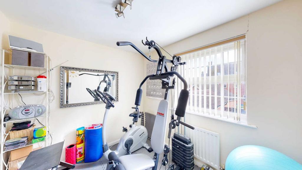 Carpeted flooring and radiator. Emersion heater cupboard.
