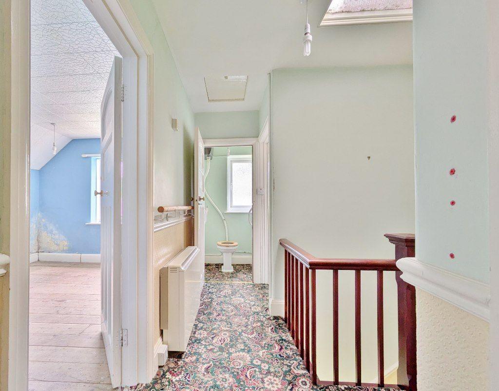 Fitted carpet. Storage heater. Light well. Ceiling hatch to the loft (with rockwool insulation and potential for a hobbies/work-space.) Wooden doors to Bedrooms One, Two and Three, WC and Bathroom.