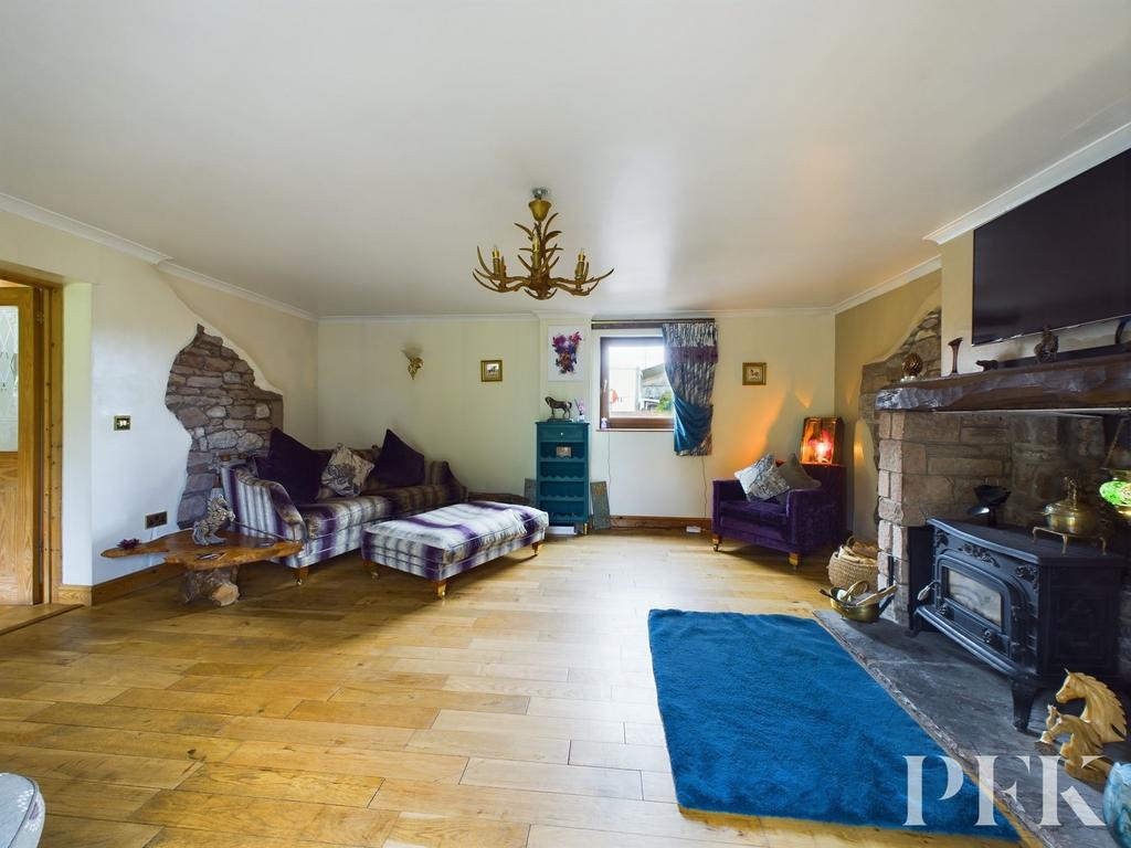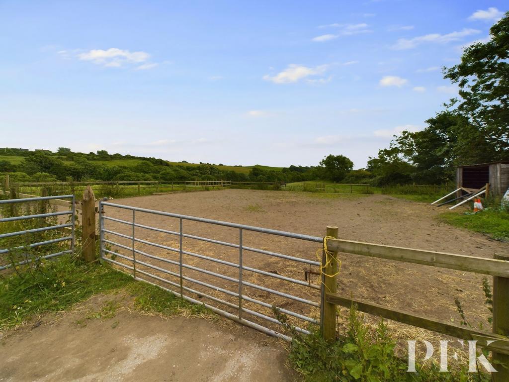The property which enjoys a beautiful semi rural setting, shared with only a couple of neighbouring properties, is accessed via a private driveway which leads to a spacious offroad parking area for several vehicles including motorhome, caravan and horse boxes. The generous gardens which are fully enclosed with fencing, mature trees and hedging are laid mainly to lawn with paved and chipped patio area, perfect for outdoor dining and entertaining.