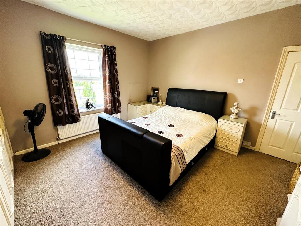 Bedroom One - 4.26m x 4.25m (13'11" x 13'11") - Range of 'L-shape' full length fitted wardrobes. UPVC double glazed window to the front elevation giving views over fields and central heating radiator.