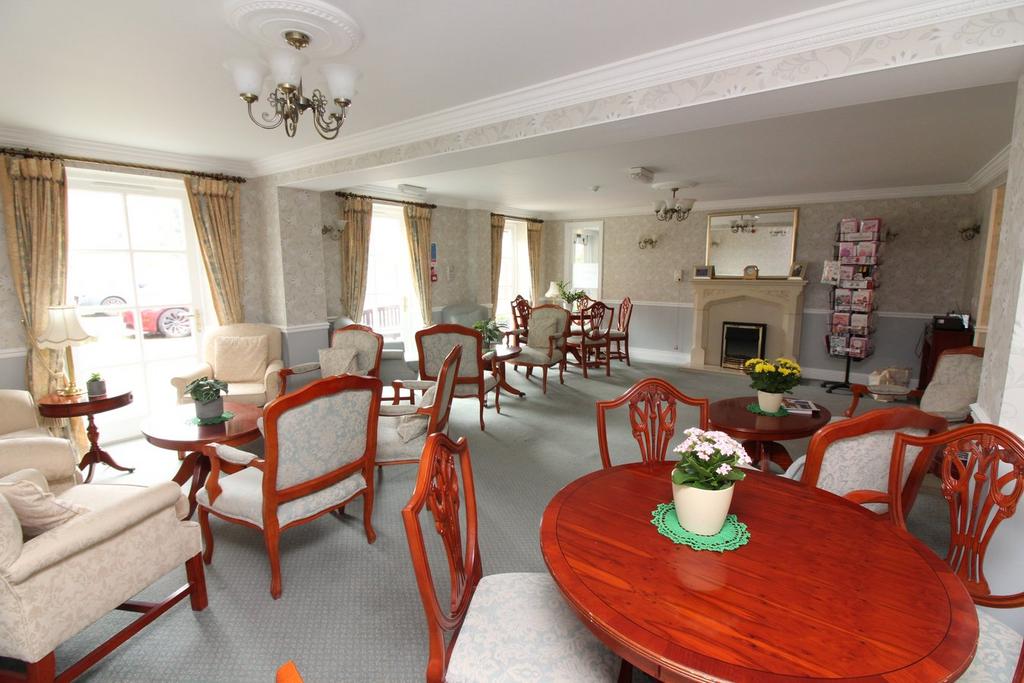 Abt. 20' 0" x 17' 6" (6.10m x 5.33m) maximum measurements. A good sized 'L' shaped living/dining room with double glazed window to rear overlooking the communal gardens. Feature fireplace with inset electric fire. Television point. Wall mounted electric night storage heater. Telephone point. Coving to ceiling. Newly fitted carpet.