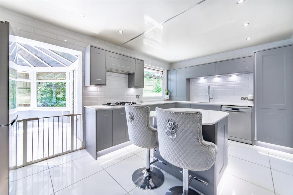 The stylish, modern kitchen boasts coordinated wall and floor units with integrated appliances, ample storage space, and a central island/breakfast bar. The kitchen opens out into the conservatory providing more space for dining or relaxing. At the end of the hallway, you find the second and third bedrooms each featuring built-in cupboards and large windows.