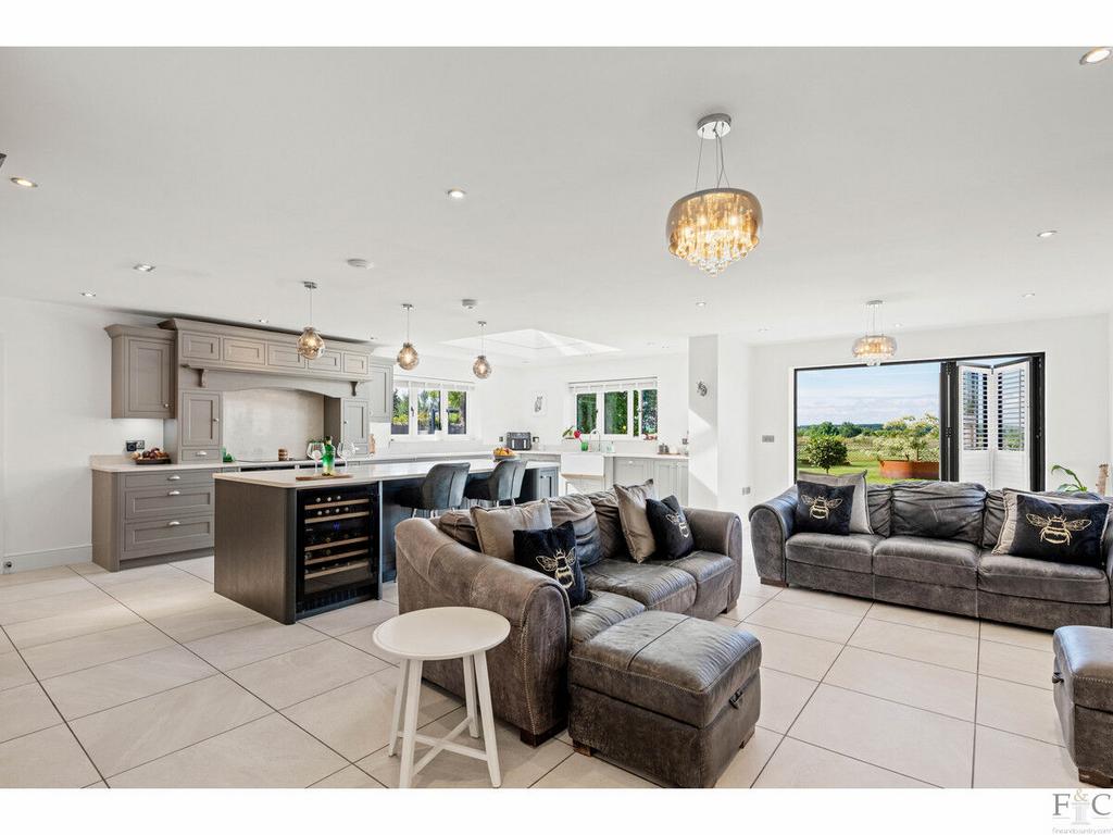 Originally built in 2021, and offered to the market with no upward chain, The Paddocks is a prestigious five bedroom - three with an ensuite - detached property in a beautiful location overlooking open countryside. It has a generous open plan kitchen dining area, utility room, boot room, study, two separate reception rooms, an integrated double garage, cloakroom and a separate family bathroom. It has been designed to befittingly match the plot of one and a half acres of land it complements and is filled with wonderful features that add immensely to the value and appeal of the residence. Being spaciously designed, luxuriously fitted and interiorly decorated with a contemporary palette of neutral colours and textured materials, the opportunity to own this house and make it become ‘home’, is surely desirable for any seeking a premium property with beautiful location.