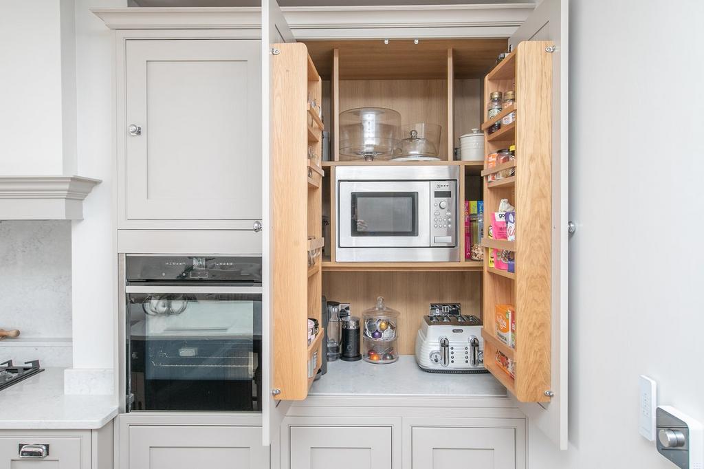 9' 07" x 5' 04" (2.92m x 1.63m) Turning to 8' 10" x 5' 5" (2.69m x 1.65m) Double glazed aluminium door to side, inset spotlight, engineered oak flooring, manifold for under floor heating, bespoke fitted seating unit with overhead storage, in frame storage units and pull out ladder unit, integrated full height freezer and wall mounted hive thermostat.