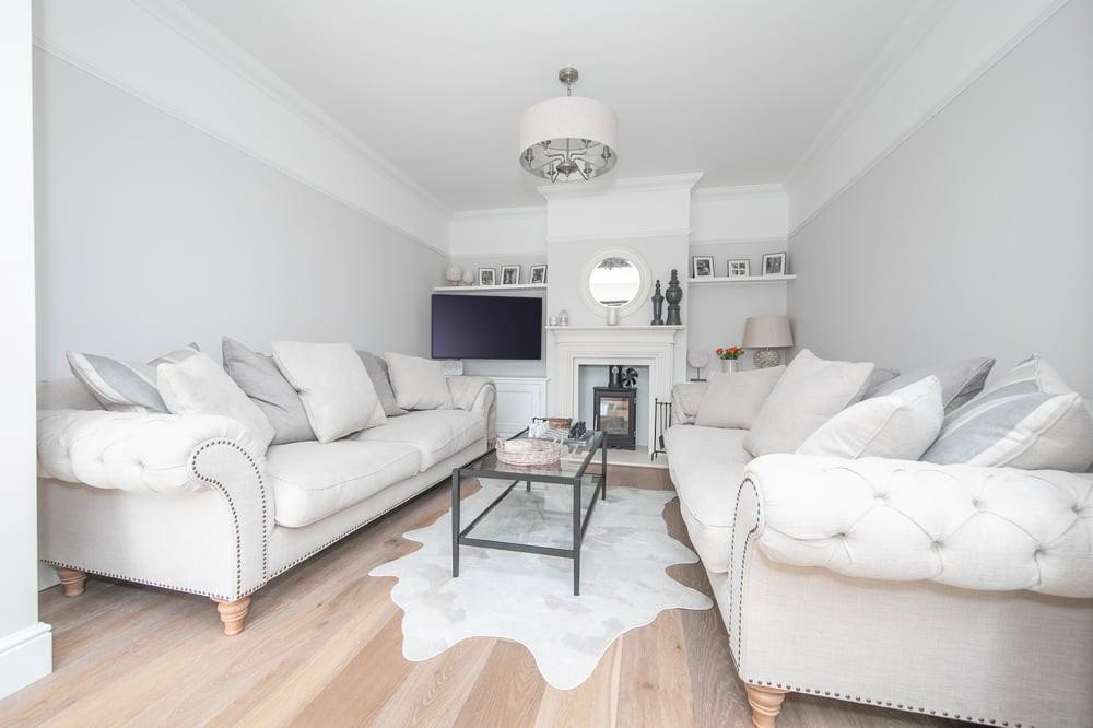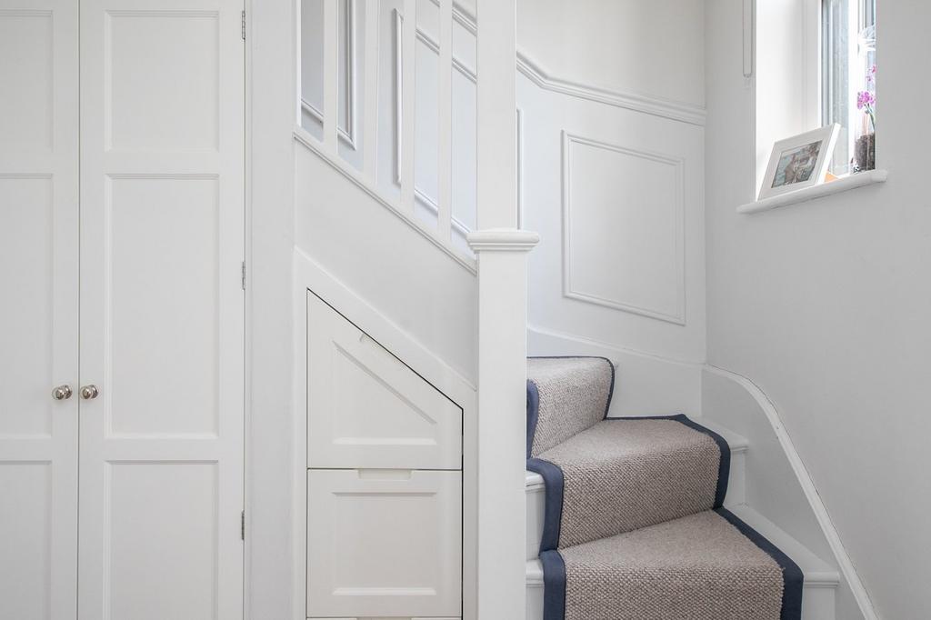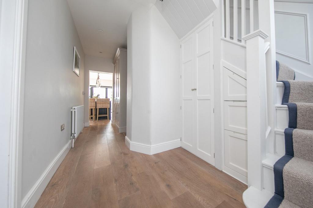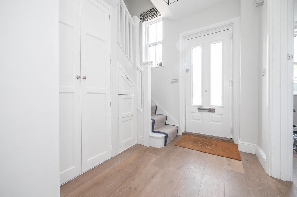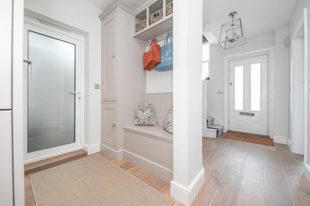 Composite front door, double glazed sash window to front, engineered oak flooring, stairs to first floor with bespoke under stairs storage, also housing water softener.