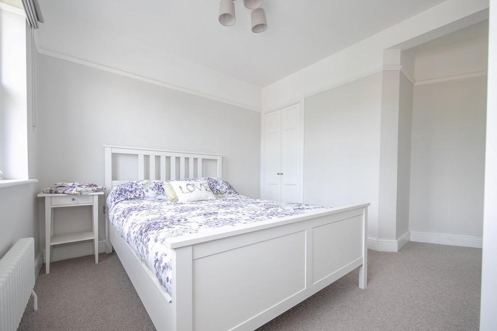 10' 5" x 10' 3" (3.17m x 3.12m) Double glazed sash windows to front with fitted blinds, column radiator, centre light, bespoke fitted wardrobe and picture rail.