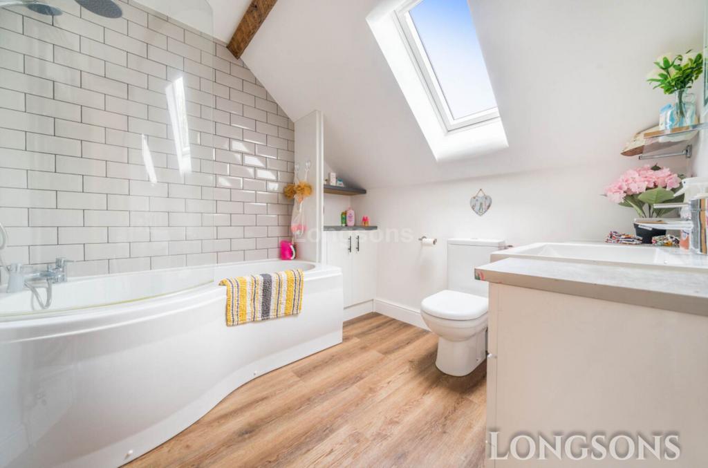 UPVC double glazed dormer windows to front and rear, two radiators, exposed beams to ceiling, door to en-suite bathroom.