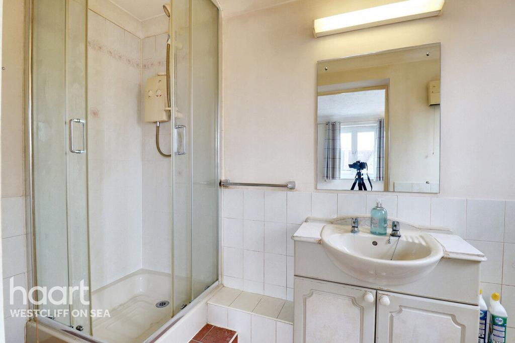Three piece suite comprising of low level WC, vanity unit wash hand basin, corner shower cubicle, part tiled walls, lino flooring, coved cornicing to ceiling.