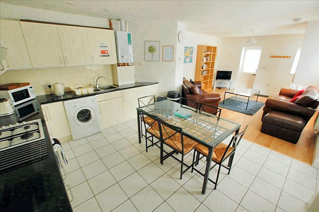 21'2" x 13'5" (6.45m x 4.09m) double aspect to rear plus two part glazed outside doors, second staircase, Kitchen Area has fitted wall and base units with contrasting work surfaces, built-in electric oven and gas hob with extractor over, one and a half bowl sink, plumbing for washing machine, tiled floor, modern Vaillant gas boiler.