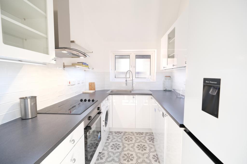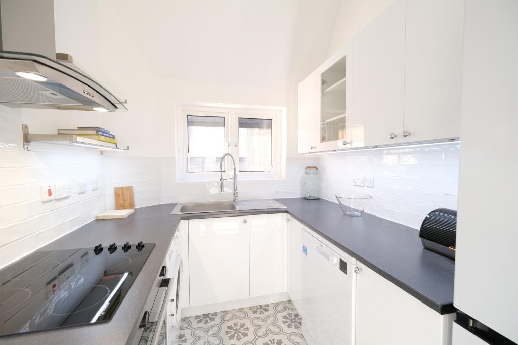 The modern recently renovated kitchen comprises of a full size dishwasher, electric cooker, hob with extractor hood above, washing machine, fridge/freezer, stainless steel sink with pull out mixer tap and insinkerator waste disposal, along with wall and base units.