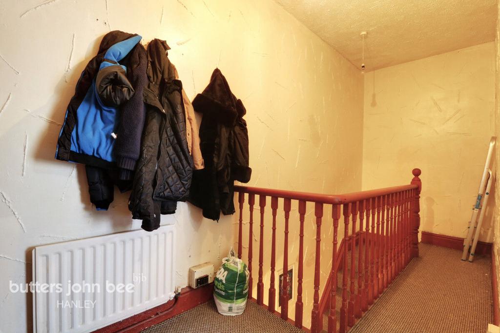 A three piece suite comprising of a panelled bath, pedestal wash hand basing and a low level WC. Upvc obscure double window to the side elevation, storage cupboard housing the boiler, radiator and cushioned flooring.