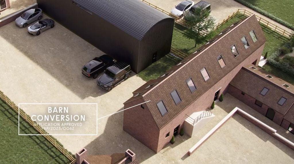 Has Full planning approval to convert existing barns and cottage and into stunning contemporary residences, blending rustic elegance with modern architecture.