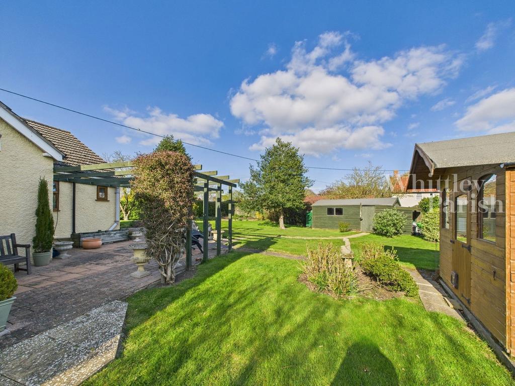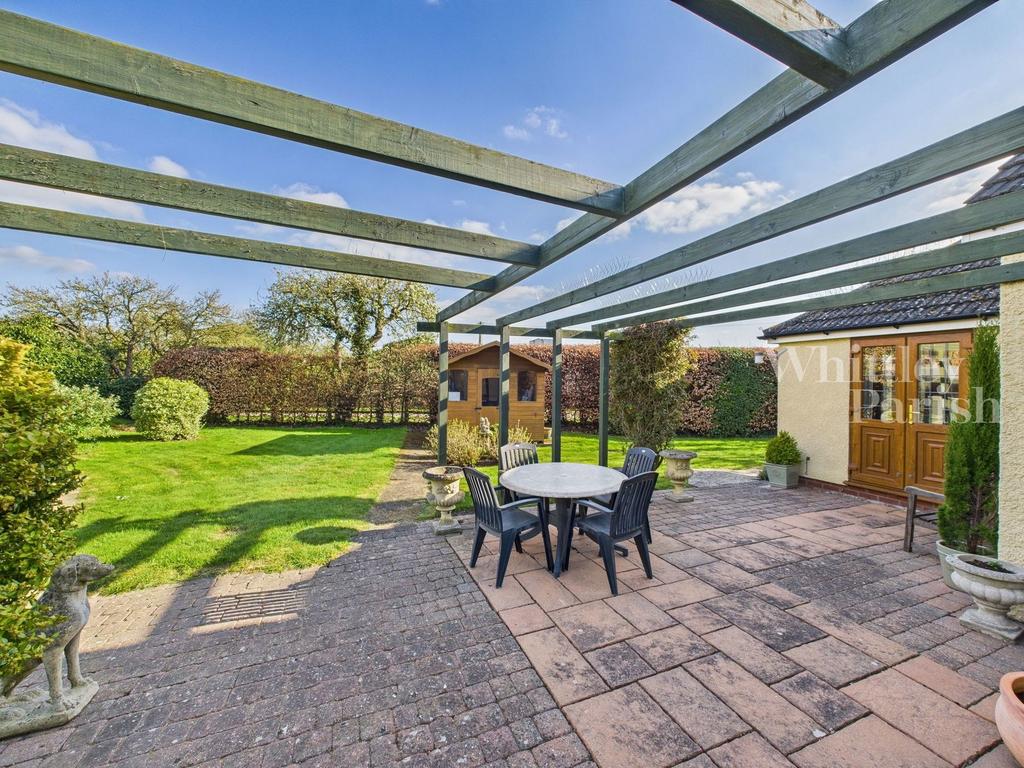 Externally the property is set well back from the road with driveway parking for several cars and five bar gate leading to the double cart lodge. The bungalow sits towards the centre of the plot with beautifully landscaped gardens wrapping around offering a fantastic degree of privacy. The gardens are mainly laid to lawn with an array of mature trees, shrubs and pretty flowers and enclosed by mature hedging. There is a useful storage shed and a summer house and a lovely paved area under a pergola ideal for outdoor entertaining.