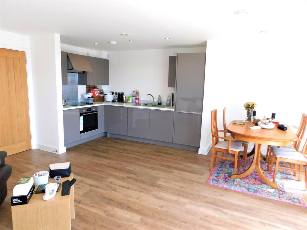 The flat features two double bedrooms, both with fitted wardrobes, ensuring ample storage space for your belongings. The master bedroom includes an ensuite bathroom, providing added privacy and convenience. There is also a separate family bathroom making the apartment perfect for sharers. The bright and spacious living area is perfect for relaxation and entertainment, with a wrap-around balcony offering stunning views of the surrounding area. The kitchen comes complete with integrated fridge freezer, washer dryer and oven and hob.