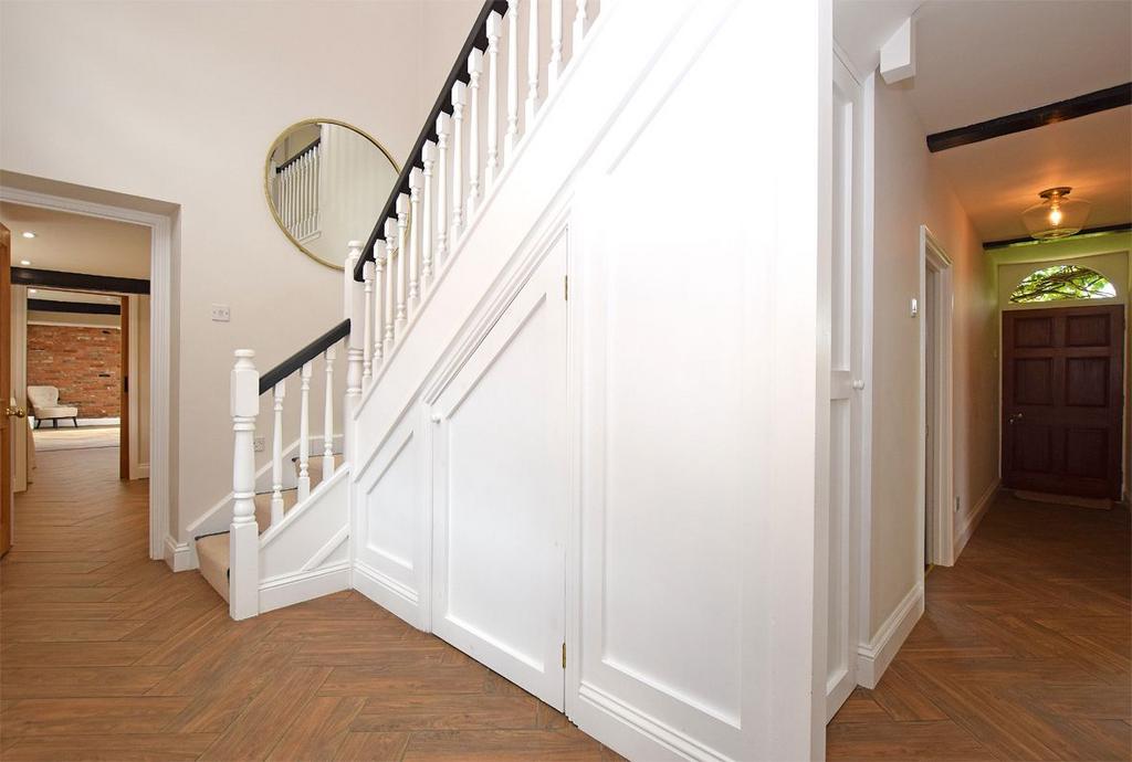 Push open the front door and you’re greeted by a grand reception hall that sets the tone for the rest of the house. With herringbone flooring, period-style radiators, and a skylight that showers the space in natural light, this entrance makes an unforgettable first impression.