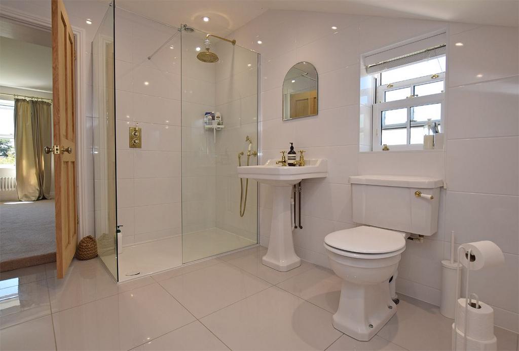 Upstairs, each of the four double bedrooms has been individually designed, offering a perfect blend of elegance and relaxation. The principal suite is the ultimate sanctuary – calming white walls, a stylish antique brass ensuite, and a walk-in wardrobe/dressing room that would make even Marie Kondo swoon. The family bathroom boasts a roll-top bath (soak away the day in style), while the two ensuite shower rooms are fitted with Burlington Heritage suites for a touch of timeless luxury.