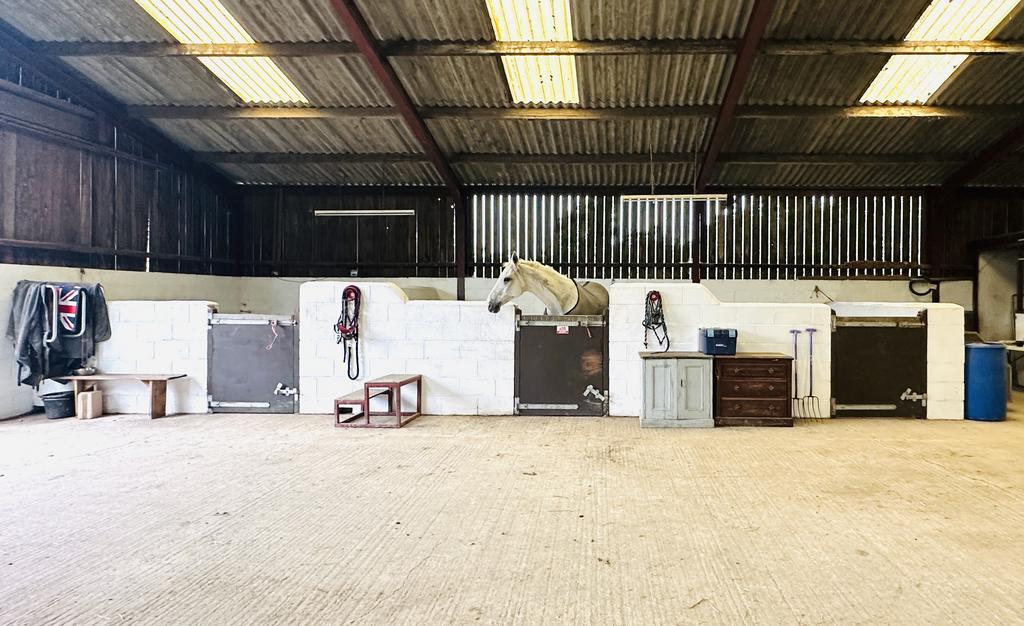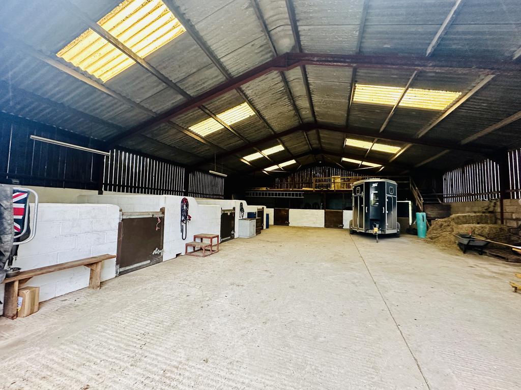 The barn accommodates six looseboxes, has a hayloft/mezzanine floor with a large, covered area available for storage. There is a concrete yard apron and hard standing for parking multiple vehicles. There is a 4KW solar panel system installed on the roof registered for FIT payments. A further useful outbuilding currently houses dog kennelling and a games room.