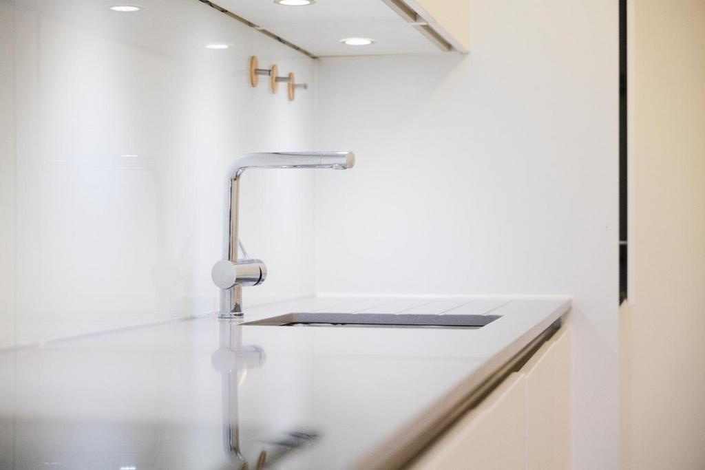 Boasting high ceilings and a bright, white decor throughout, this apartment is flooded with natural light, creating a spacious and airy atmosphere.