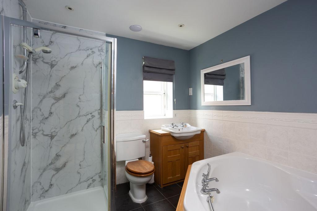 Stairs from the entrance hallway lead to a spacious galleried landing with built in shelves, leading to five bedrooms and further home office/study. The generously proportioned Master Suite has fitted wardrobes and an en-suite shower room. There is also a second en-suite shower room to the second bedroom whilst the other bedrooms share use of a large family bathroom suite with corner bath, shower, toilet and sink.