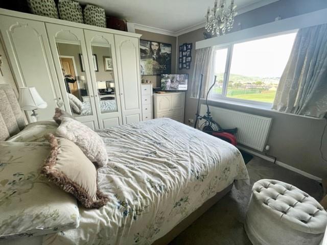 Bedroom One - 3.83m x 3.23m - With uPVC double glazed window to the front elevation enjoying breathtaking panoramic views, fitted wardrobes to one wall, one double radiator and a fitted carpet.