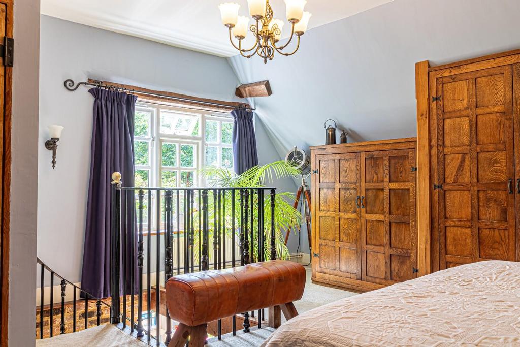 First Floor Accommodation - The first floor reveals the peaceful master suite, accessed via a spiral staircase, offering serene views of the gardens and Ashridge forest. Three double bedrooms and family bathroom bathroom are also found on this floor.