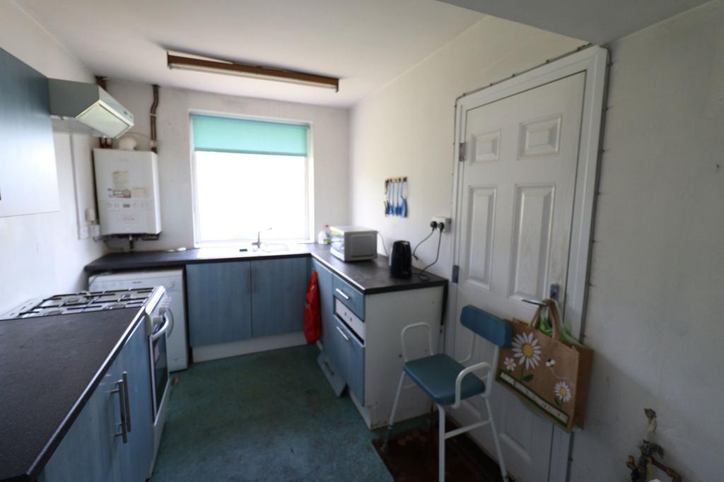 Having a range of matching wall and base units with complementary work surfaces, single sink, drainer and mixer tap, plumbing for washing machine, space for cooker, space for tall fridge freezer, UPVC double glazed window, wall mounted ideal combination boiler, water meter, strip light, entrance door to side.