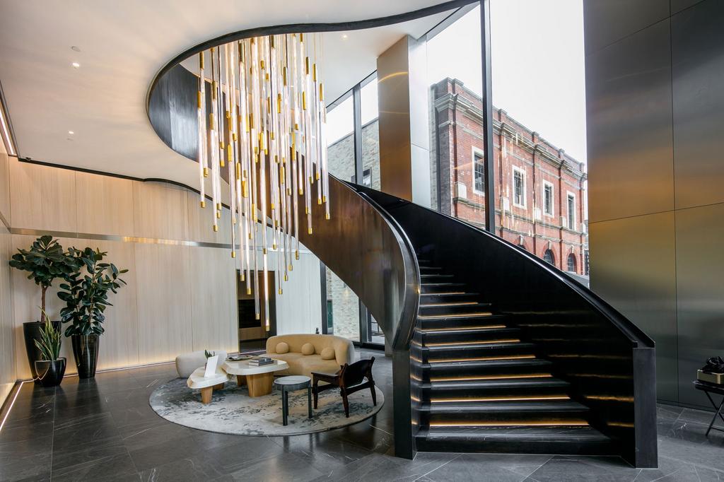 Taking the dramatic spiral open step design staircase, you reach the bedrooms with en-suite bathrooms. Each bathroom is fitted with walk in shower and master bedroom includes a chic marble encased bath tub.