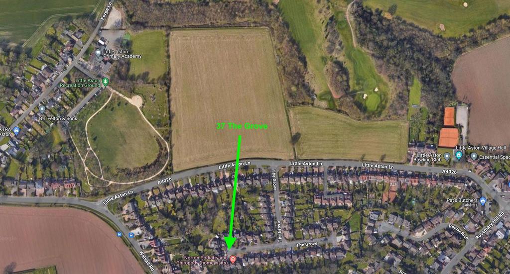 The Grove is approached via Little Aston Lane and is within walking distance of local shops on Little Aston Lane and Clarence Road, Little Aston Village Hall and Little Aston Tennis & Bowls Clubs, train services to Birmingham, Lichfield and beyond at Blake Street Station, Little Aston Primary School on Forge Lane, Little Aston Recreation Ground and Aston Wood Golf Course. The Grove is in the catchment for King Edward VI Secondary School in Lichfield (close to the train station in Lichfield).