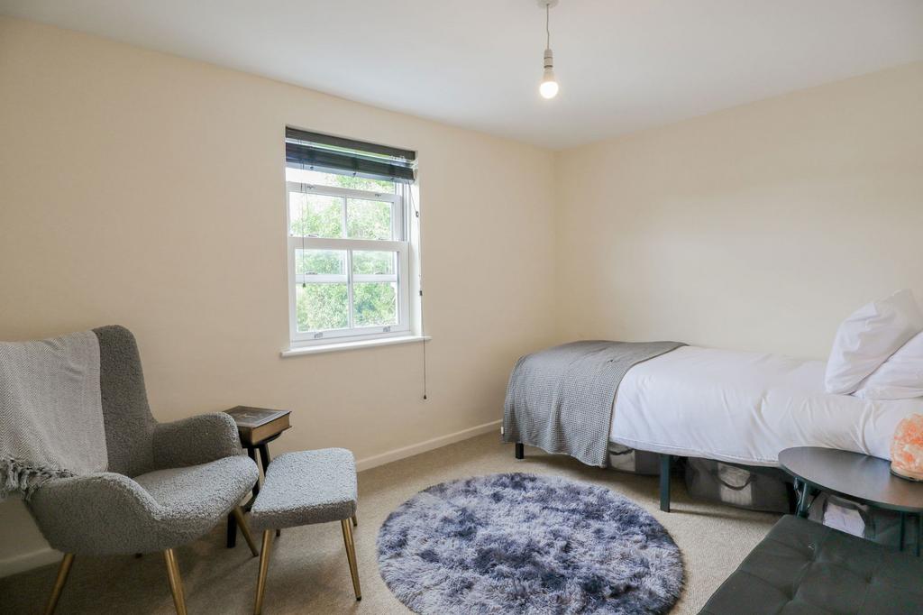 Allowing a super king size bed and further bedroom furniture. The master benefits from having a spacious walk in wardrobe. A window views out over the large rea garden.