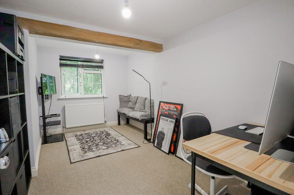 Bedroom Two will allow for a king size bed and further bedroom furniture. There are two built in storage cupboards, one housing the boiler. A window views out the front of the home.
