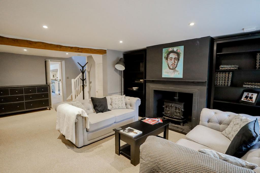 Open to the sitting room and with doors leading to the front porch and kitchen. Stairs rise to the first floor landing. Spacious enough to allow for multiple sofas and further living room furniture. The focal point of the space is a fireplace with a stone hearth. Inset to the fireplace is a log burner.