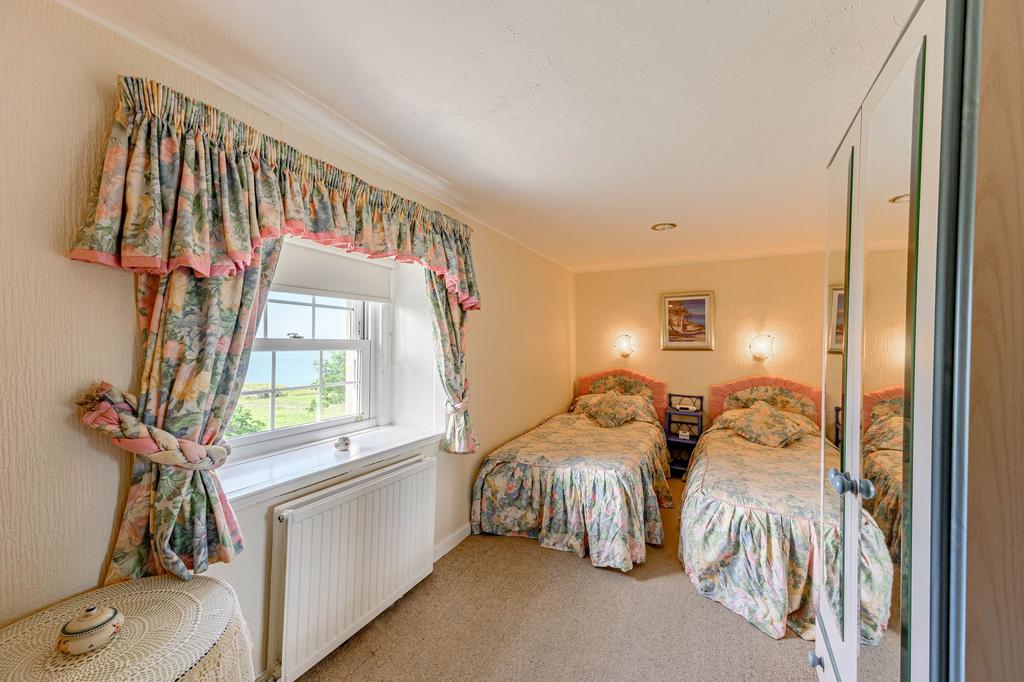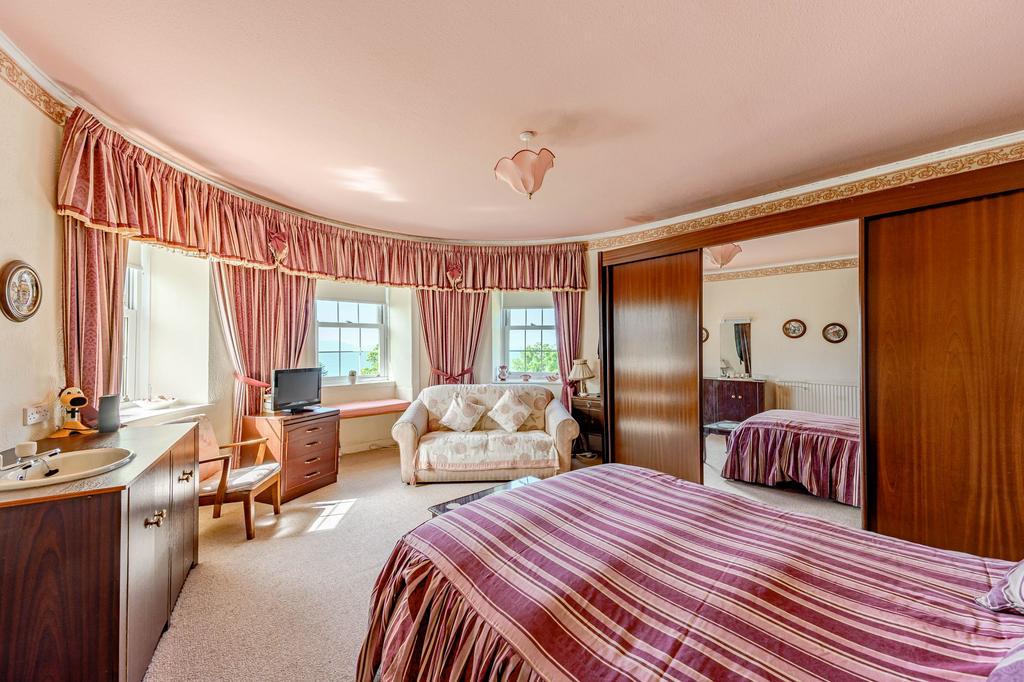 Returning to the central hallway the main staircase leads to the first floor with 2 large double bedrooms and a family bathroom at the top of the stairs. Both bedrooms benefit from en-suite shower rooms with electric showers, WC’s and basins. The principal bedroom is situated in the bowed centre section giving it the best views in the house. A corridor leads to bedroom 3 which benefits from a wash hand basin. The 4th bedroom is located via a second staircase accessed from the kitchen and a central area between bedroom 3 and bedroom 4 can currently be accessed via either staircase and could be utilised as a 5th bedroom, turned into a cosy study nook or utilised as storage.