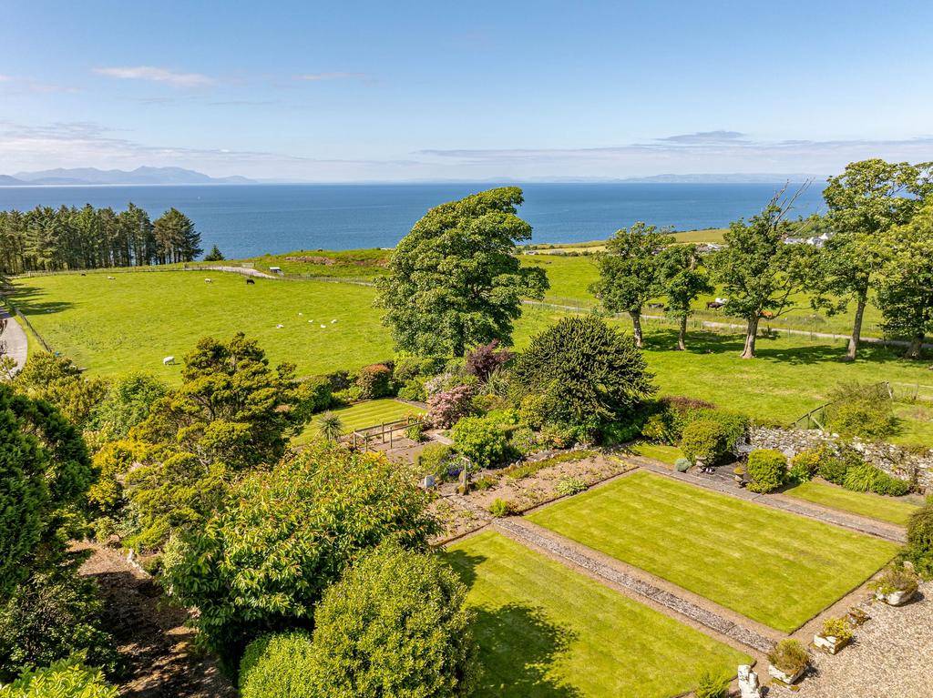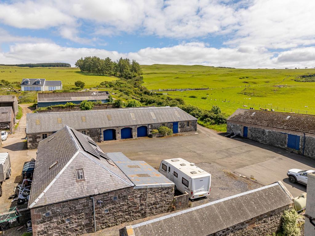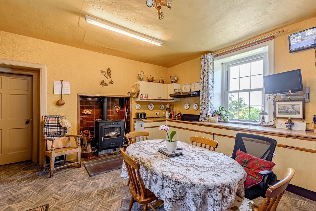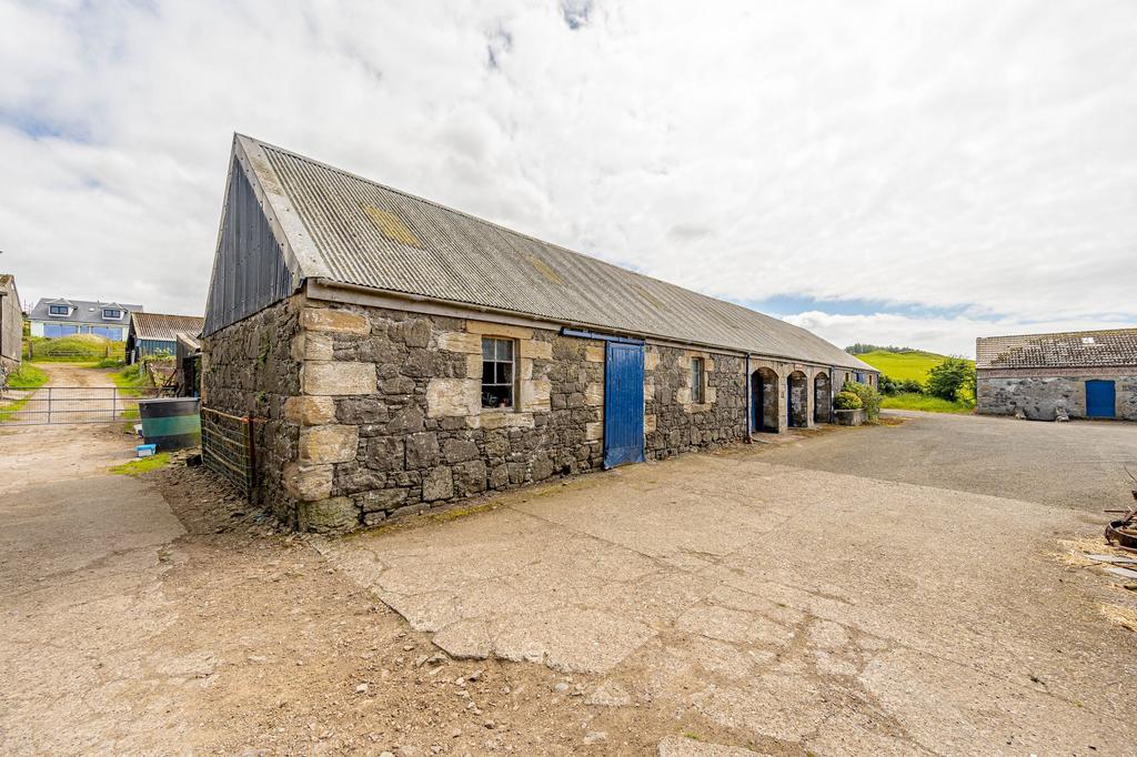 Dunduff Farmhouse sits on the hill above Dunure providing it with enviable and uninterrupted views across the Firth of Clyde to Arran and beyond. This Grade B listed Farmhouse is of stone construction under a slate roof with a bow fronted centre section. Internally the accommodation is spacious and flexible but does require some modernisation. The accommodation briefly comprises front door to vestibule and internal hallway. The central hallway leads to the large dining room and to the living room benefitting from large windows in the bowed front of the house providing panoramic views and with an open fireplace currently with an inset electric fire. There is a large dining kitchen with wood burning stove with back boiler supplying hot water and a walk in pantry cupboard. The pantry is fitted with base and wall units with integrated hob, double over, stainless steel sink and space for a dishwasher. There is a further cosy sitting room beyond the kitchen with electric fire and a laundry/boot room with shower room off completes the ground floor accommodation.