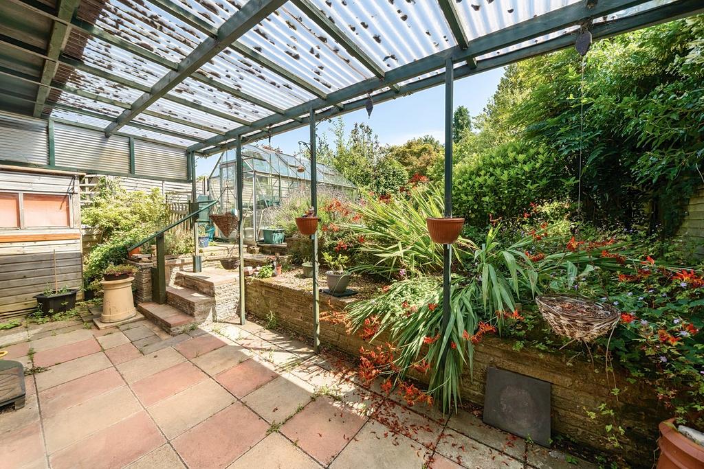 A good size private rear garden with three sheds and two greenhouses to remain.