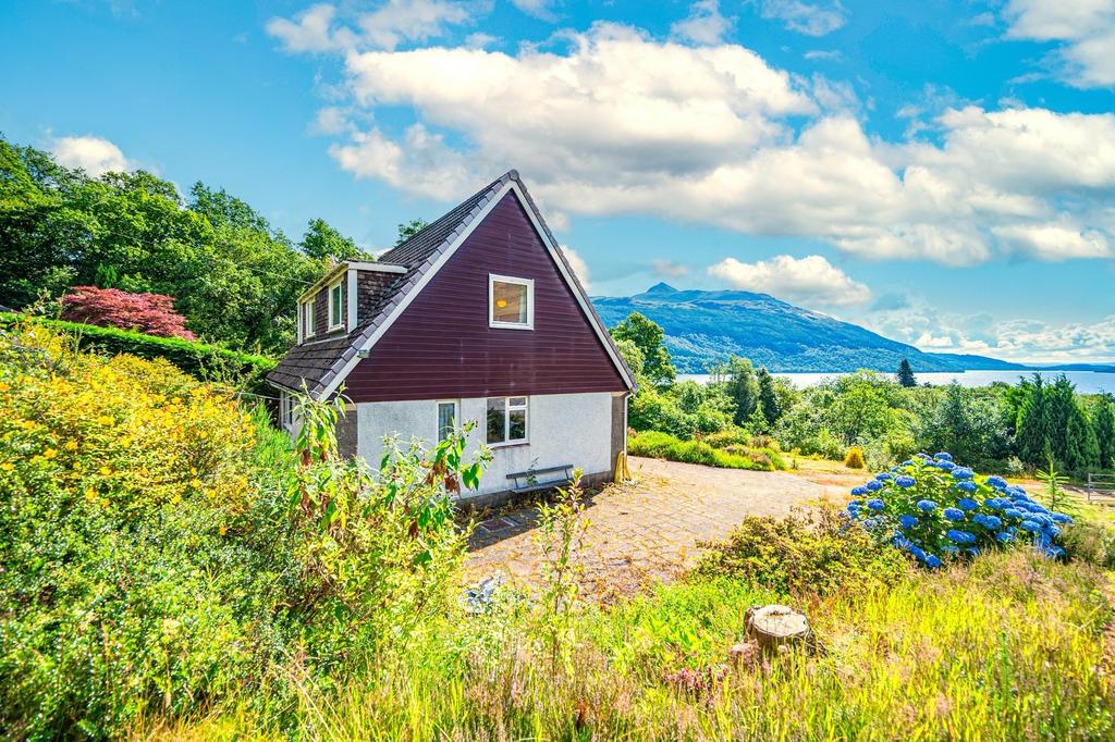 Brown’s Acre is located at the far end of a small rural lane in the picturesque village of Tarbet. The house sits in a commanding elevated position, set amidst open countryside and affording magnificent uninterrupted views south over Loch Lomond towards Ben Lomond.
