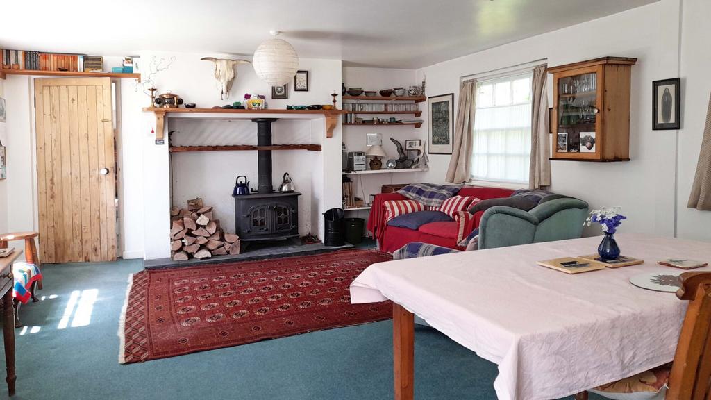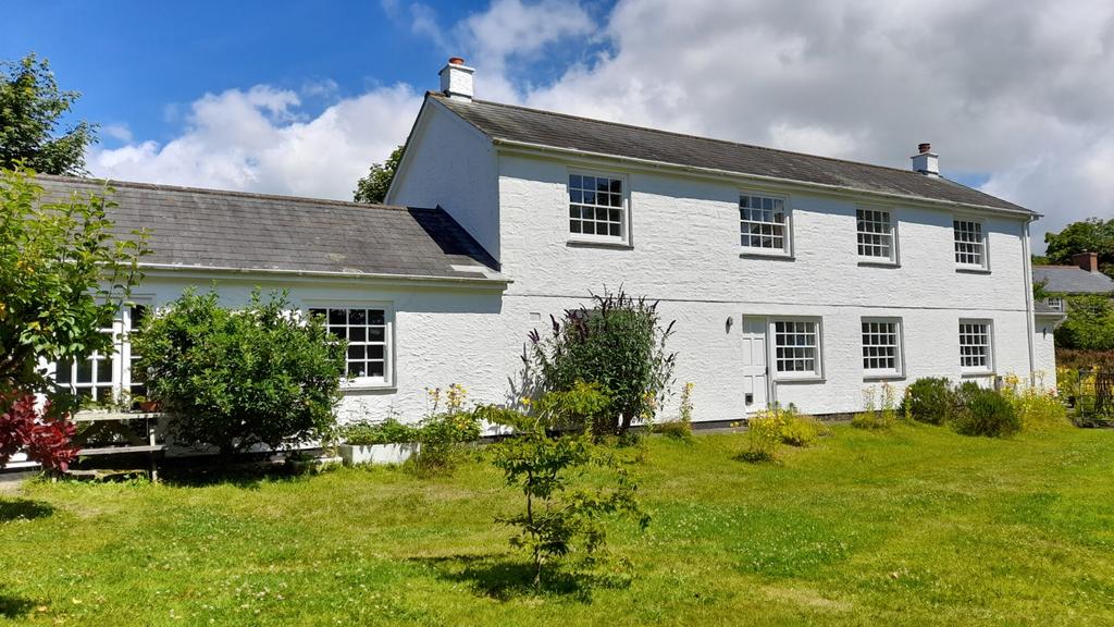Warmed by oil-fired heating, with the majority of the windows having a southerly aspect, the accommodation provides at ground floor an entrance porch, three lovely reception rooms with the kitchen having a slate tiled floor and Rayburn, and a downstairs bathroom. At first floor there are four generous bedrooms served by another bathroom.
