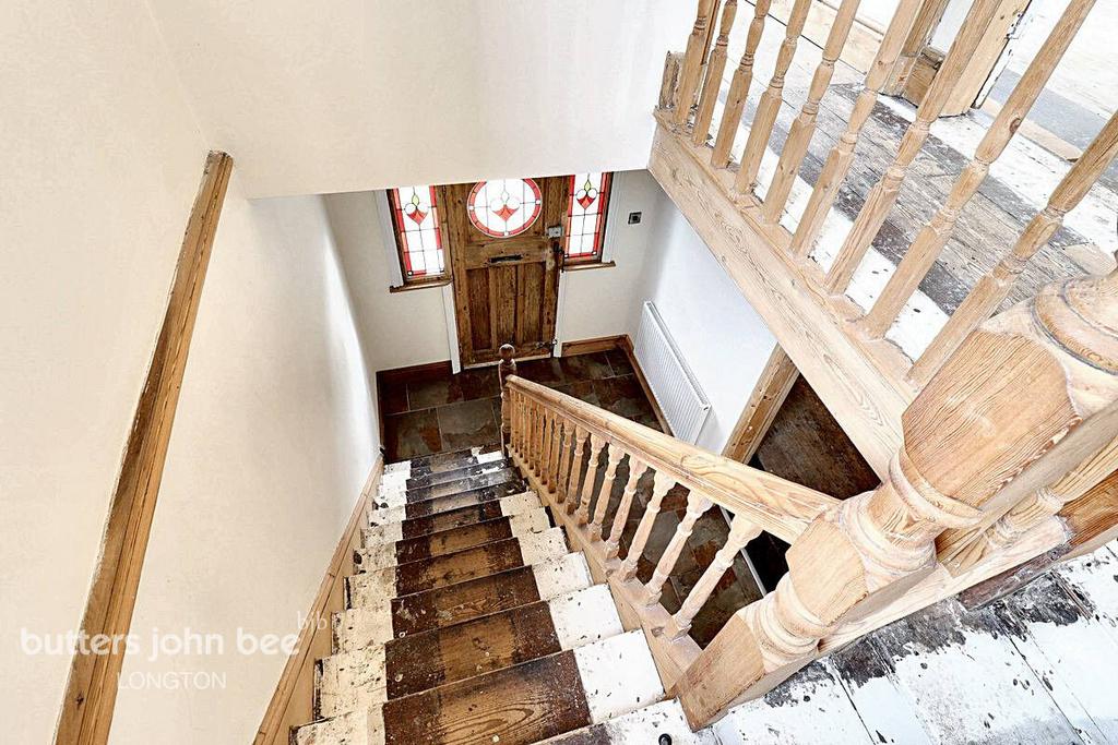 Upon entering, you are welcomed by a spacious hallway featuring original stained glass windows that cast colourful, dappled light into the space, creating a warm and inviting atmosphere. These windows are a standout feature, offering a glimpse into the home's storied past while adding a touch of artistry.