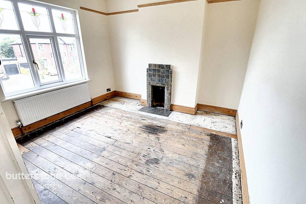 Double glazed bay window to front, open fire in feature surround, radiator.
