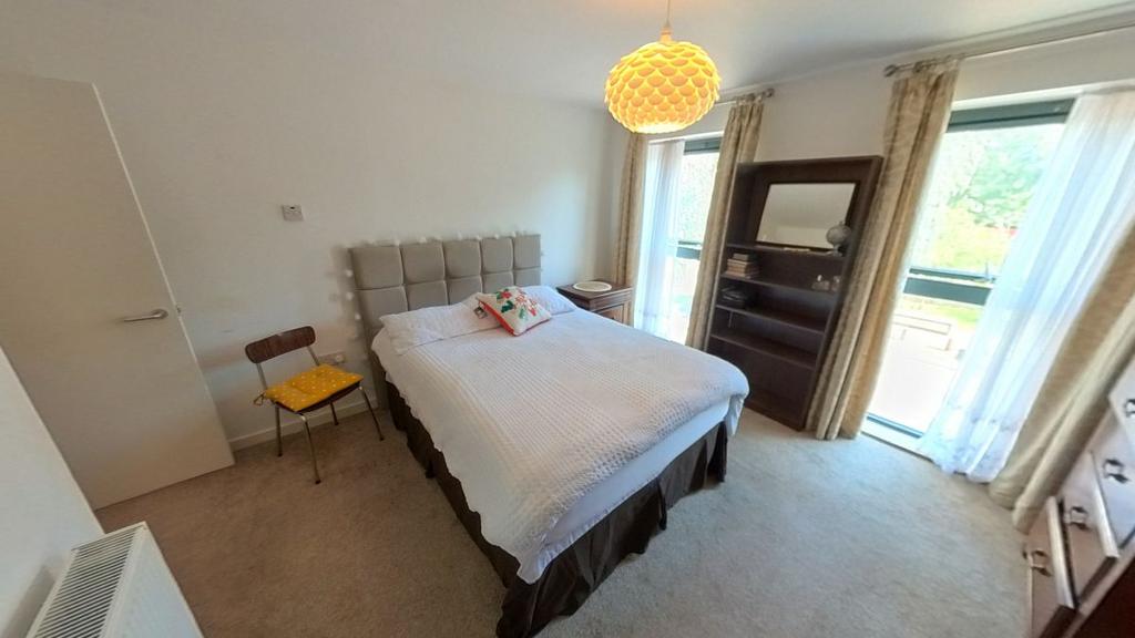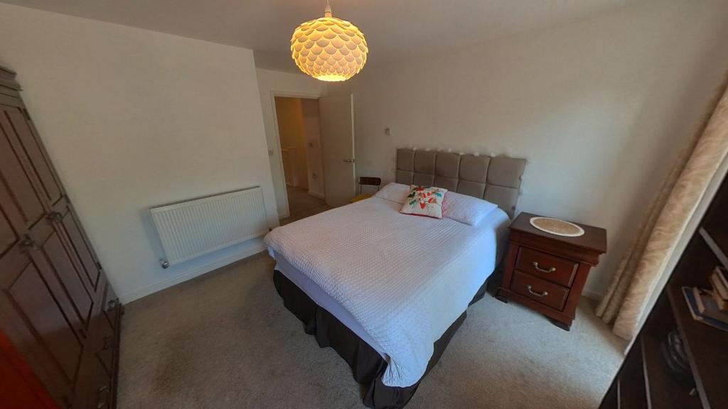 Master Bedroom, 1st floor, front of the property, overlooking small green allotment and parking bays.