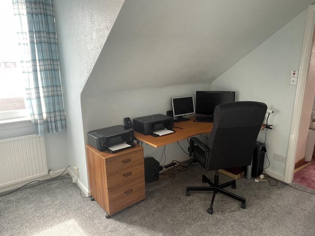 property. Partially tiled walls and pine panelled. Radiator. Coombed ceiling. Carpeted. Velux window.